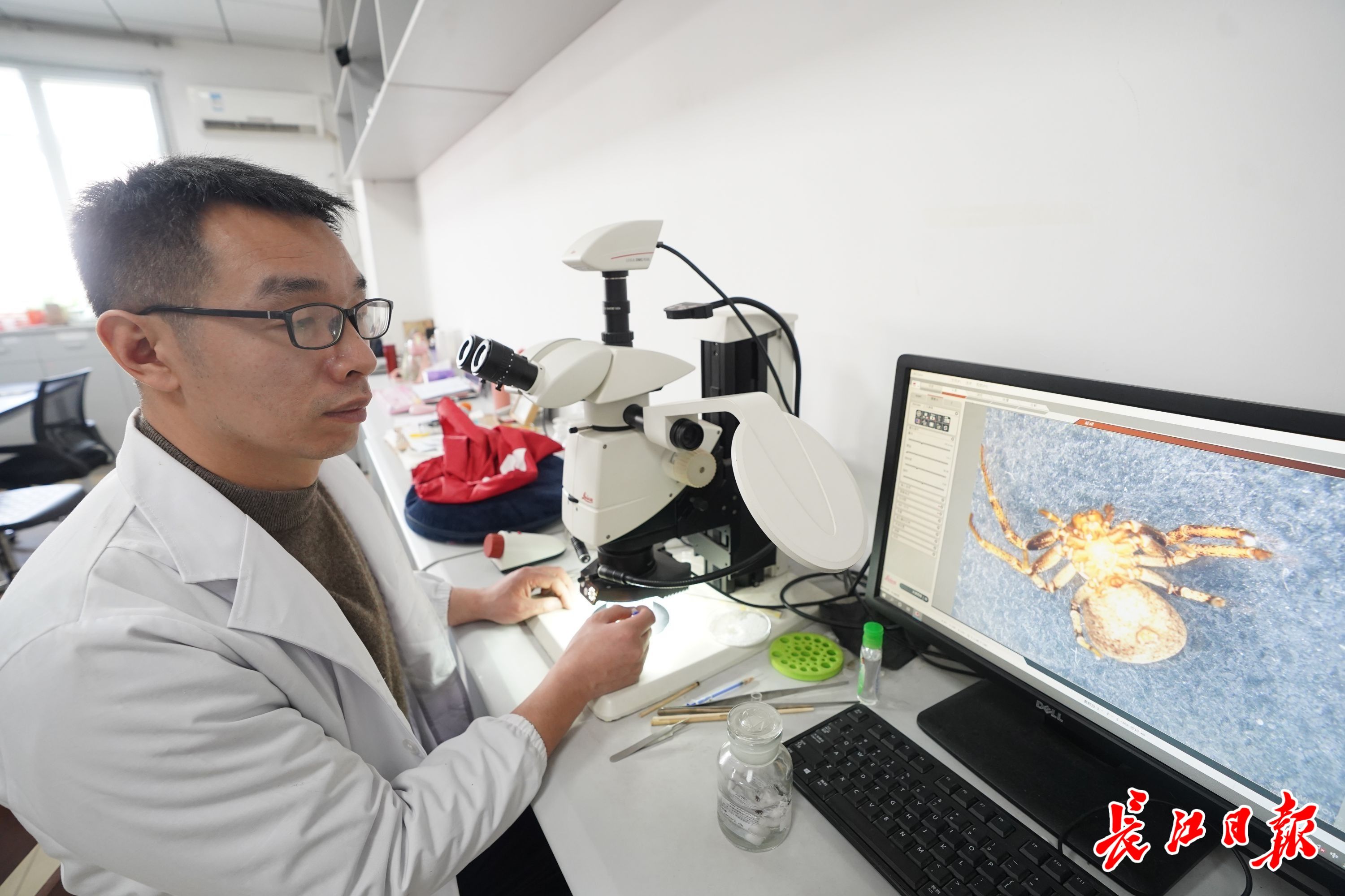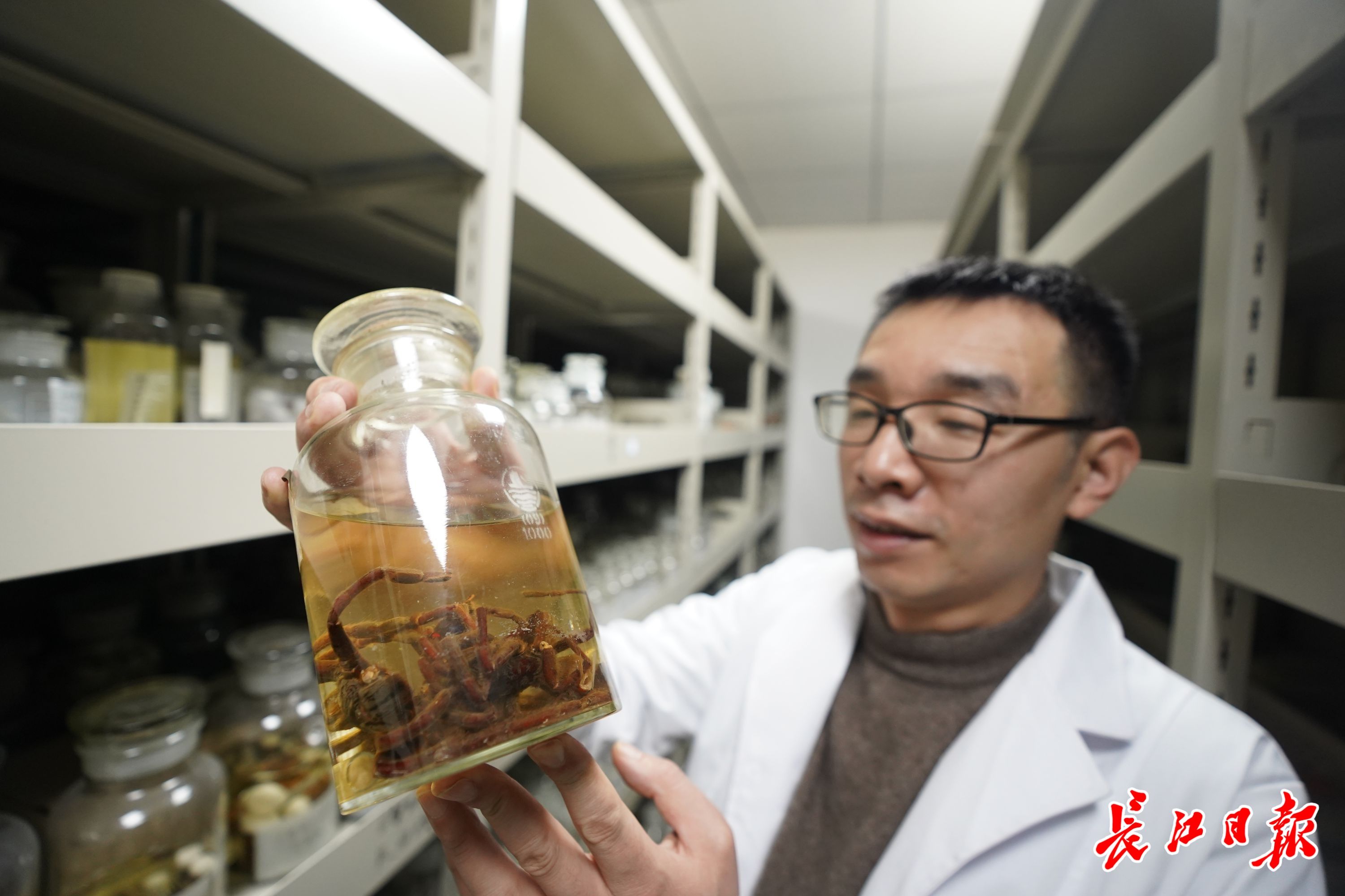 刘杰在湖北大学蜘蛛标本室。记者肖僖 摄