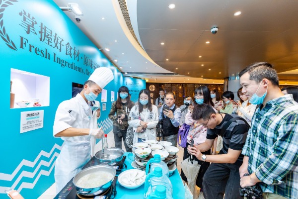 莆田厨师现场制作莆田扁肉汤等。