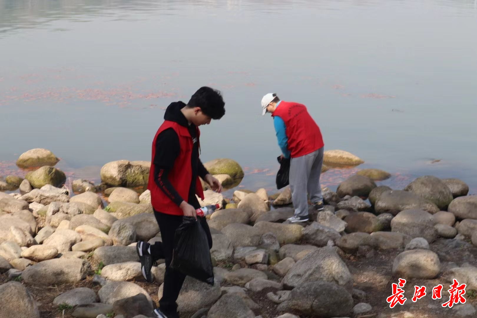 33平方公里的东湖,静卧在繁华都市间。长江日报记者从凌波门到东湖村一棵树再前往东湖磨山景区的途中,沿路看到很多身穿红马甲的志愿者。他们在东湖边,一边拾起游客留下的垃圾,一边向游客宣传保护环境的理念。志愿者孟醒申来自山东济南,目前在武汉体育学院上学,他说:“我几乎每天晚上下课后都会到东湖逛逛,东湖滋养了我们,趁着周末我们组队到东湖边巡湖,为它的水清岸绿献上自己的一份力量。”