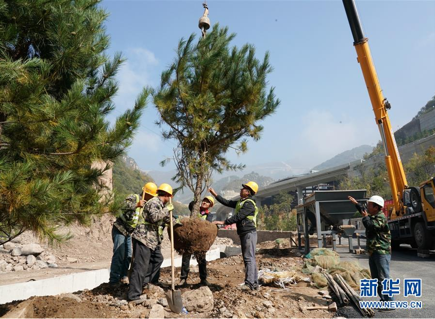 工作人员在延庆赛区内种植树木。