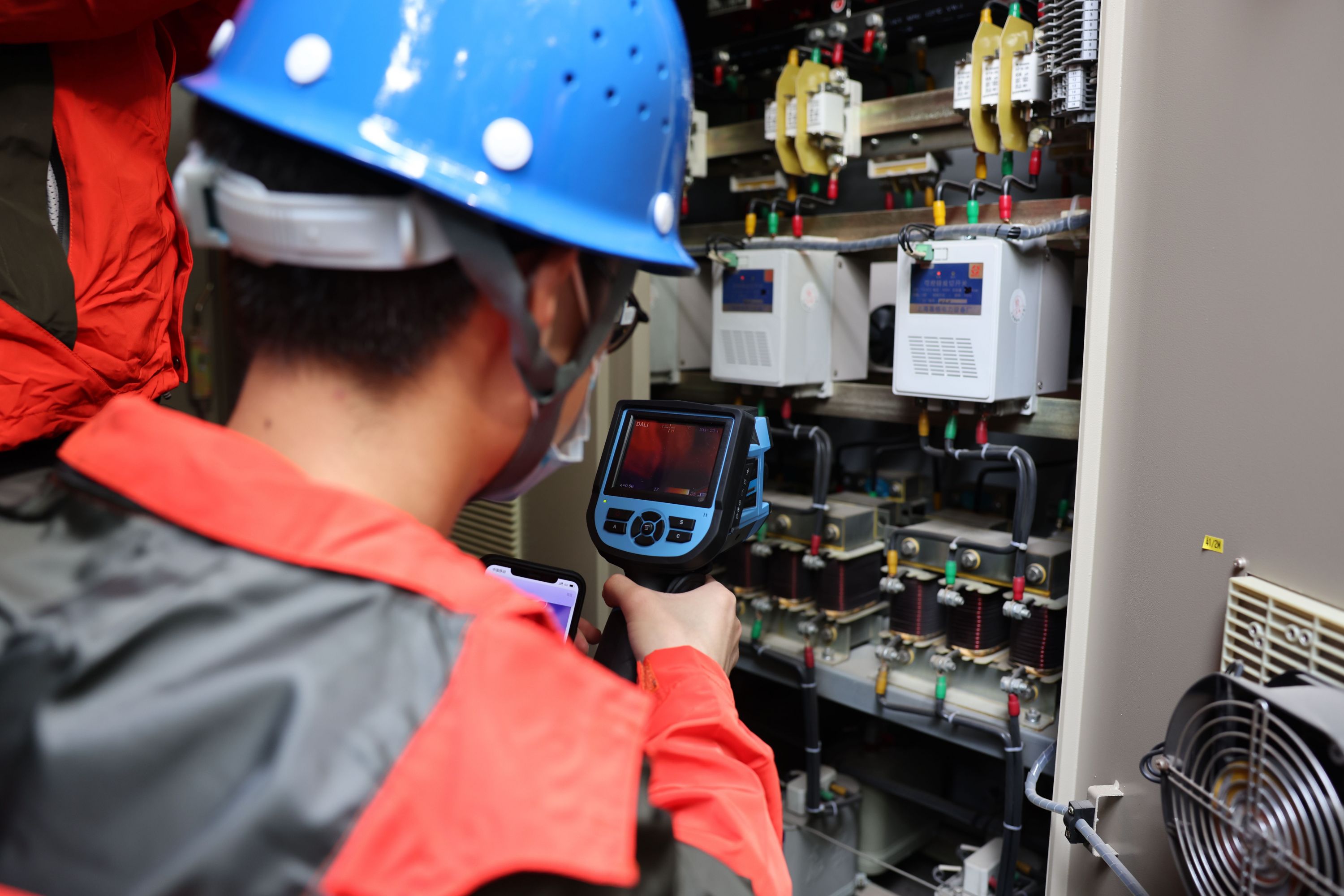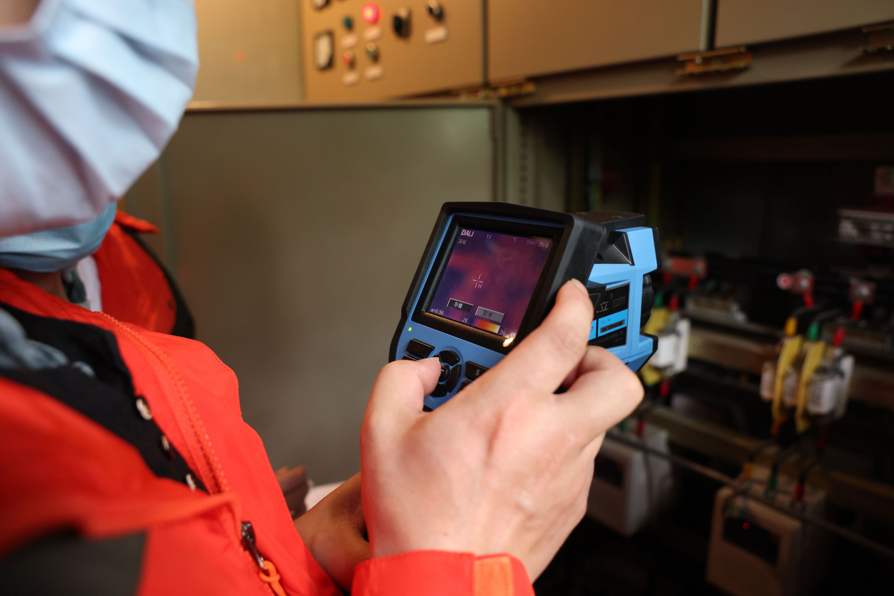 28日上午9时,7名身着红衣、蓝盔的“体检官”来到东湖绿道。他们都是盛隆电气集团的专业电气工程师,这次来到东湖绿道,应管理方之邀为沿线配电房进行“体检”。来到湖光序曲配电房,配电室“藏”在竹木间。绿道电工何春雷打开配电房、低压柜,“体检官”刘凯拿出红外测温仪,对着每一个电器元件检测温度。另一位“体检官”段民敏则拿出“大家伙”,类似相机的大型测温仪对柜内检测。只要扫过的区域有温度异常,测温仪屏幕立刻会有显示。在线路接口,“体检官”还会用万能表检测电压是否正常,并顺着线路仔细观察是否有破损、锈蚀等。