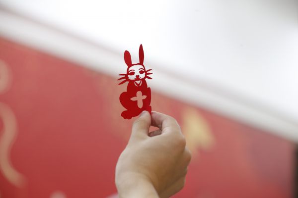 武汉商学院国学小课特邀“堵河剪纸”第三代传人周坤为主讲人。课上,多幅精美的剪纸作品在周坤手中诞生,兔儿爷象征团圆、福猪代表财富、大白菜寓意家丰食富。台下同学不禁发出声声赞叹,跃跃欲试。在主讲人的带领下,学生们左手握紧红纸,右手持着剪刀,绘制喜爱的图案。据周坤介绍,同学们制作的灯笼上的剪纸图案里,玉兔象征中秋节、鲤鱼代表年年有“鱼”,是传统、吉祥的图案;天安门象征国家,是迎接国庆节的元素;牡丹花既是国花,也是湖北的一种传统绣样风格,象征富贵、圆满。“多样的剪纸配合象征团圆的灯笼,相信可以给同学们带来别具一格的‘双节’氛围。”周坤说。