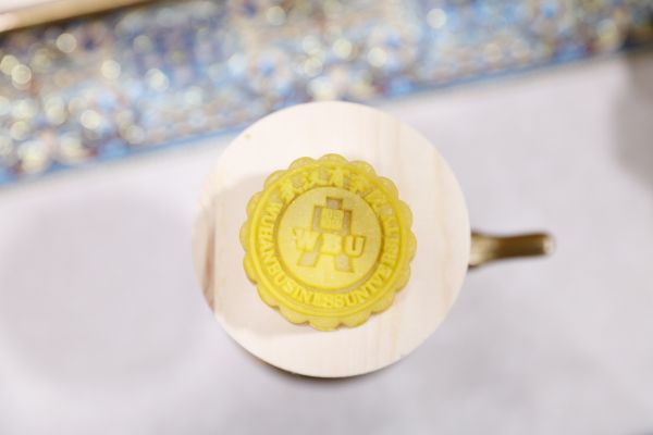 小课现场,校长王清华为学生们切月饼,将浓浓的中秋祝福送给每一位学生。记者注意到,武汉商学院在现场推出了校徽定制版月饼,月饼尺寸设计为57毫米,寓意着武汉商学院建校走过57年办学历程。