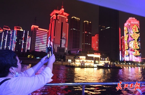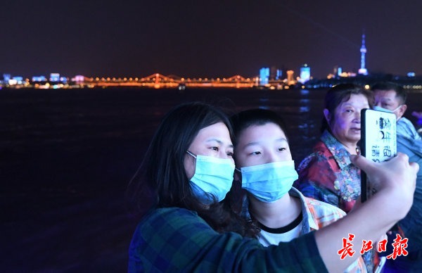 长江日报-长江网10月1日讯 10月1日夜,正值国庆中秋佳节,来自全国各地的游客乘坐“君旅号”游轮夜赏长江灯光秀。当晚的灯光秀以“致敬祖国”为主题,以“中国精神、中国力量、中国担当”三个宏伟篇章向祖国致敬。长江灯光秀也吸引了不少市民来到汉口江滩、武昌江滩,登上武汉长江二桥等处一睹视觉盛宴。记者李子云 胡冬冬 何晓刚 摄影报道