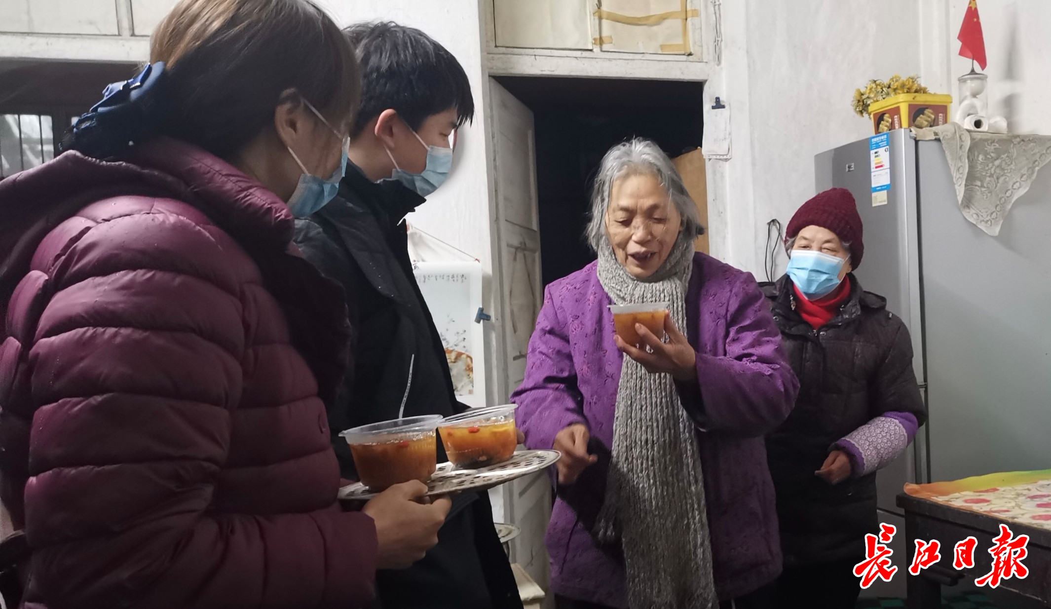 青山区老党员为“老街坊”送银耳汤。长江日报记者冷靖华 摄