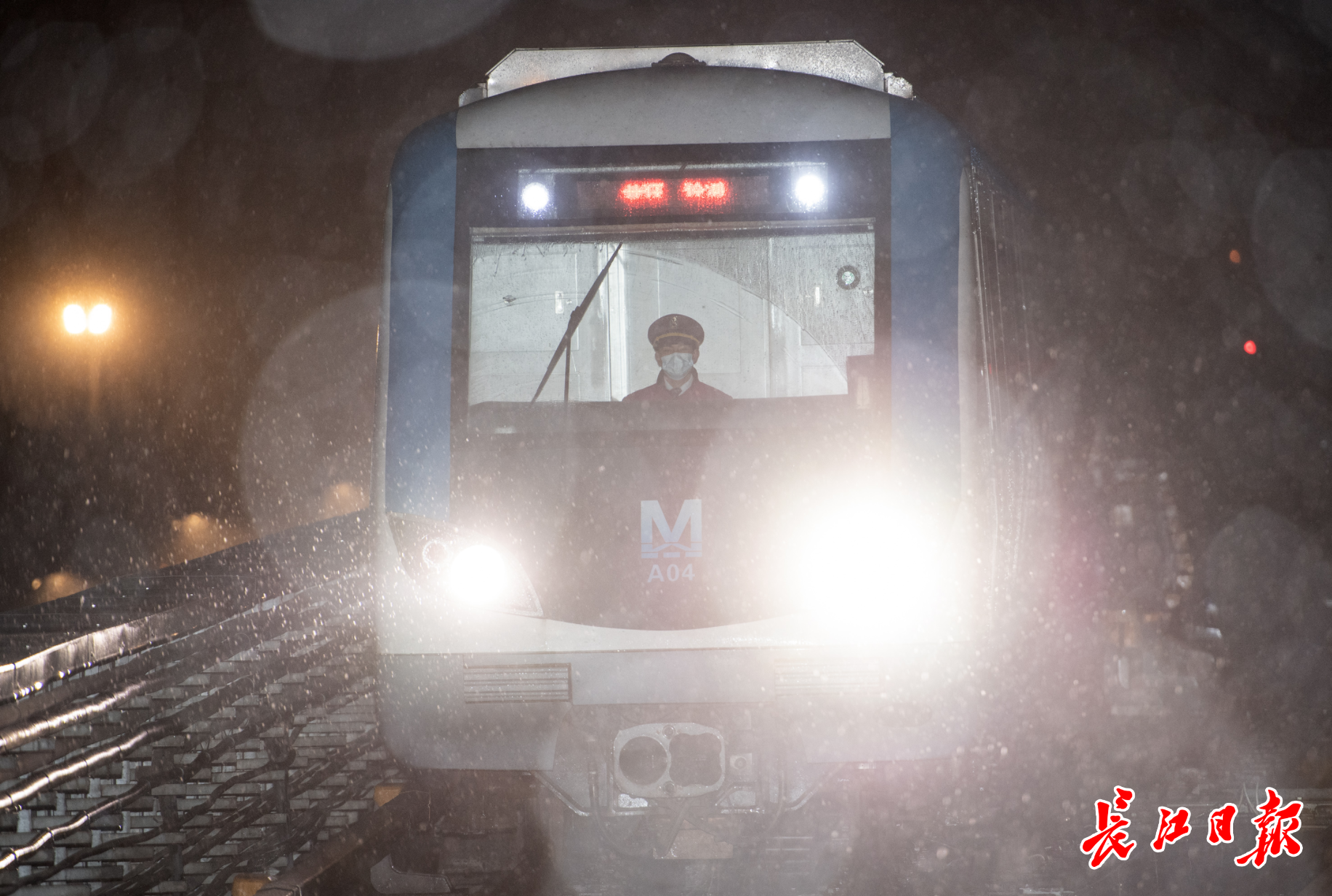 1月28日凌晨4时50分,地铁1号线司机代鑫驾驶着压道车执行压道任务,确认行车区间安全。 长江日报记者任勇 摄