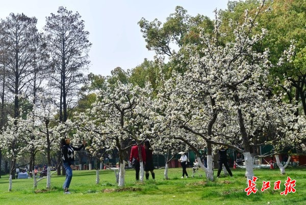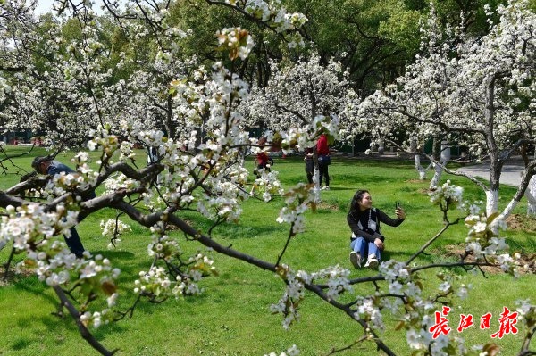 长江日报大武汉客户端3月15日讯 3月15日,武汉市东湖风景区梨园广场,20多株豆梨满树白花,让前来游玩的游客眼前一亮,纷纷驻足观赏。一位女士惊喜地说:“东湖梨园原来真的有梨花。”