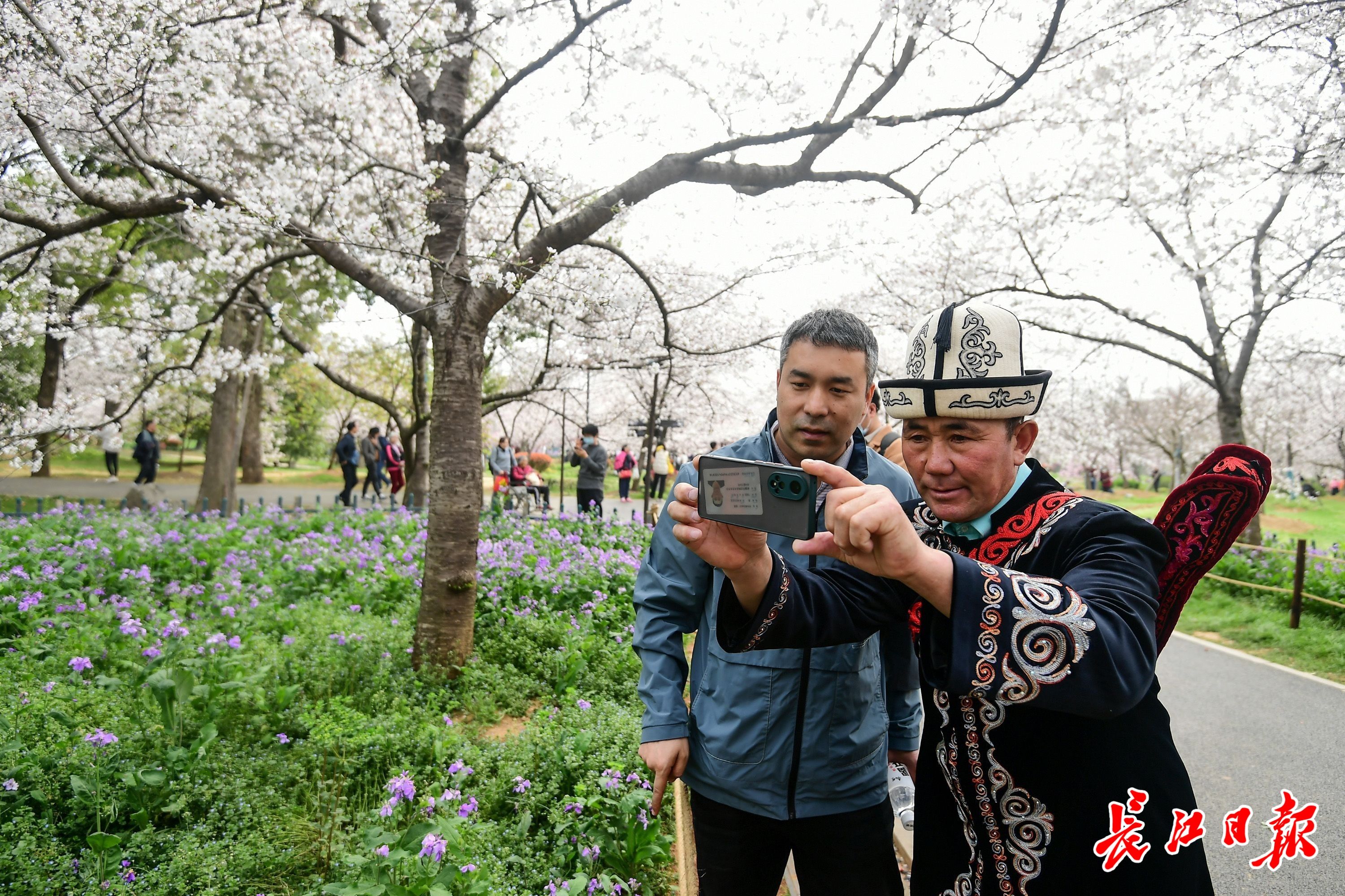 3月16日,受邀来武汉的新疆大叔阿布都加帕尔·猛德一天的行程安排得满满当当,东湖赏樱、登黄鹤楼、参观中共五大会址、乘游轮夜游长江。游览期间,他拿着手机不停地拍,“等我回去,我要让村里人看看,看看我们祖国还有这么美的地方”。