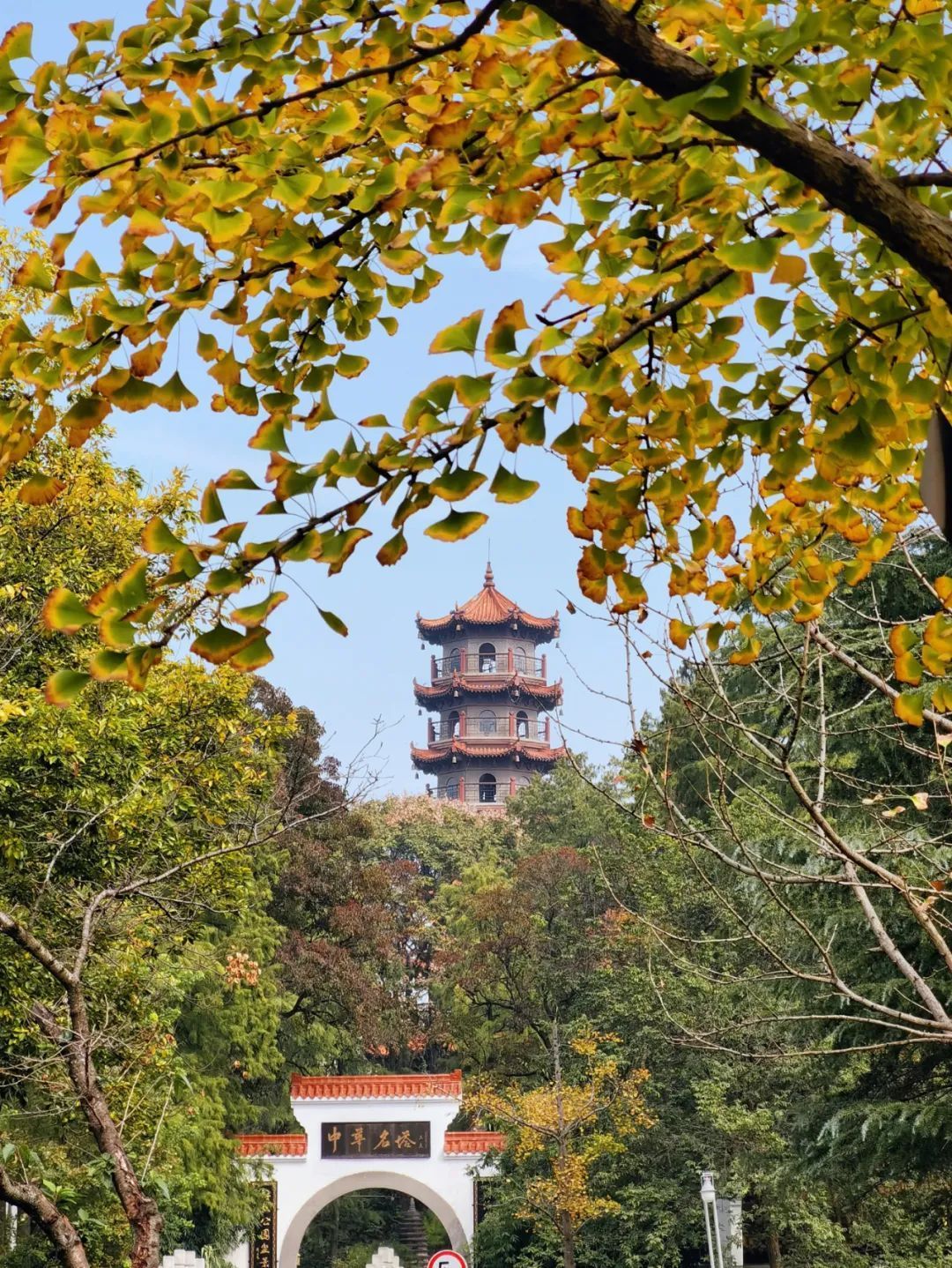 站在东湖环湖路上远眺凌波门