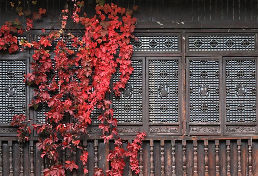 红叶依偎着窗棂