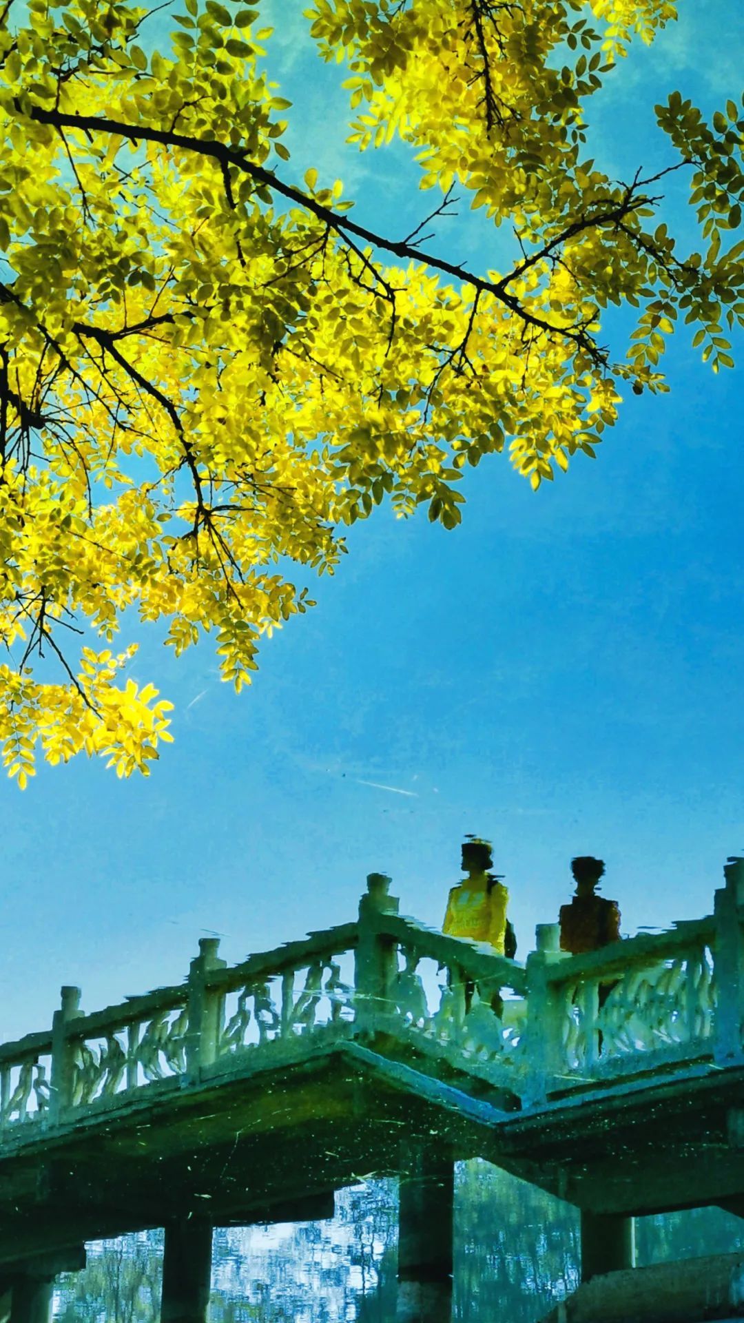 碧水黄叶伫立水云间