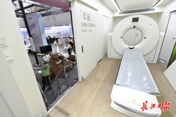 联影展出的车载医学影像中心系统。 记者詹松 摄