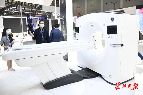 GE展区,展出的雷神山医院同款CT机。 记者詹松 摄
