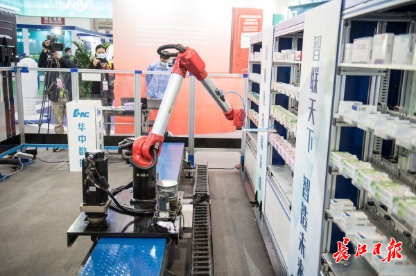 在A1抗疫物资馆的卓尔智造展区,一款六轴关节机器人正在进行搬运,这款机器人可自行完成高达150公斤的抓取、码垛工作,有望在紧急情况下运送医疗物资。国内首款可吸收骨折内固定螺钉同样吸引了观展者,工作人员介绍,该款螺钉植入体内,将逐步在人体内降解,变成二氧化碳和水,成为患者福音。