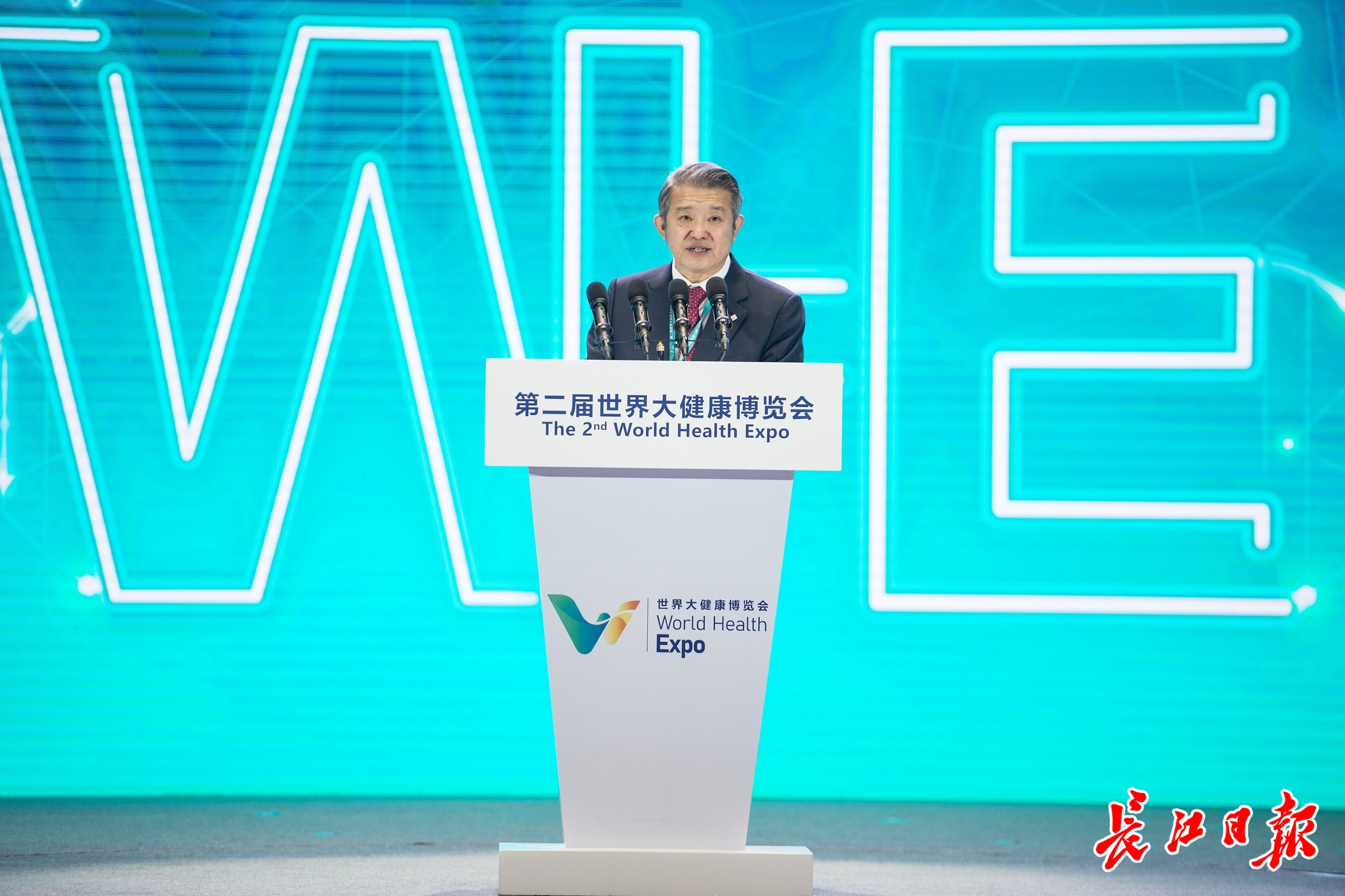 陈东升在第二届世界大健康博览会开幕式上发言。记者任勇 摄