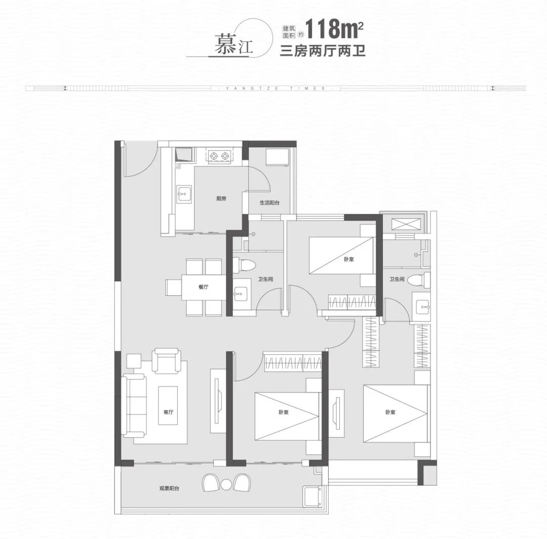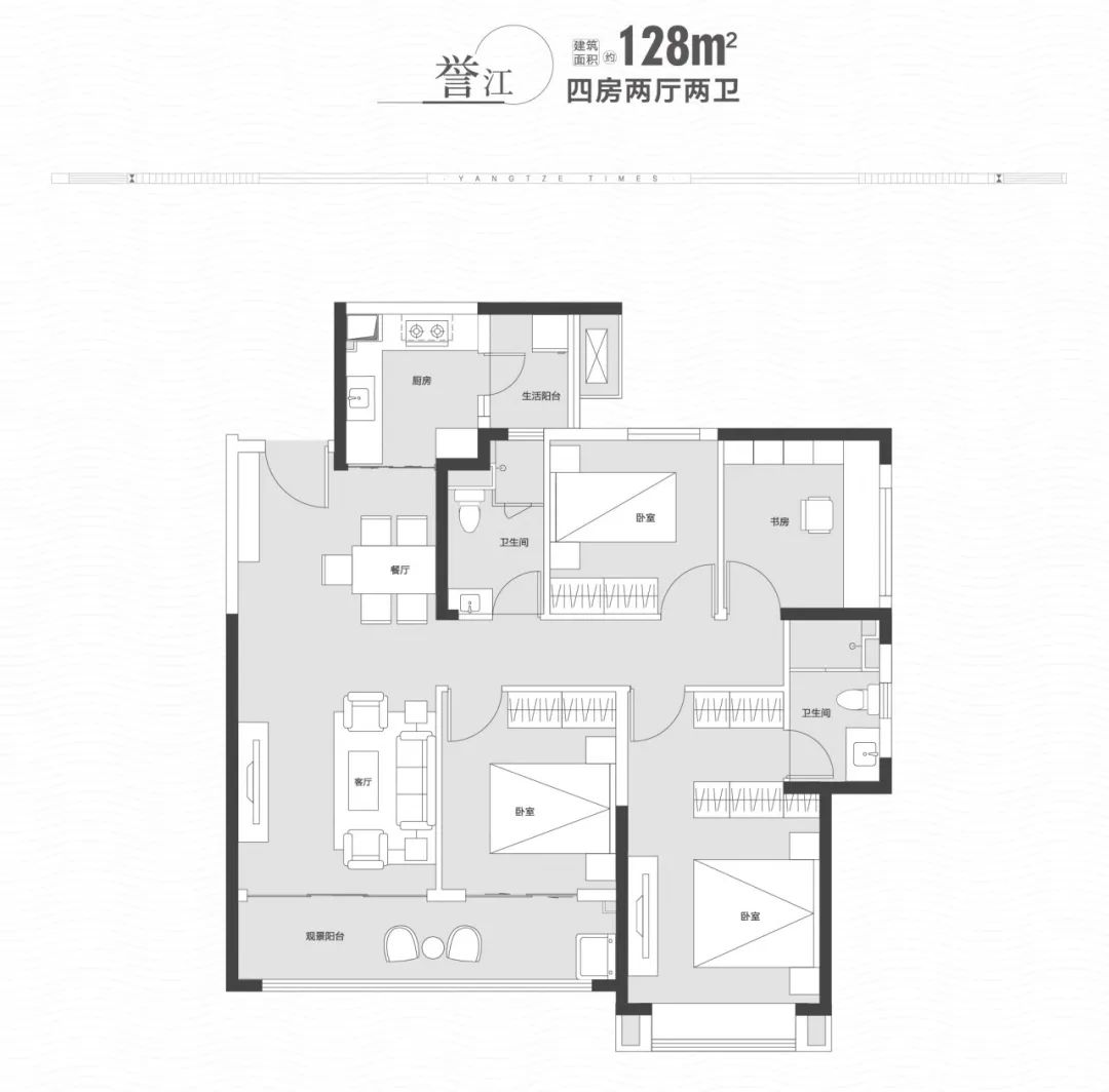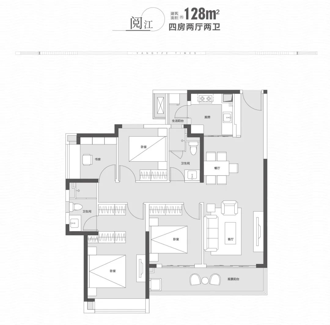 “与长江交心”的理念:约90%以上户型可实现观江效果,其中,建面约143㎡更是实现了四面宽瞰江,与一线江景放怀相迎。