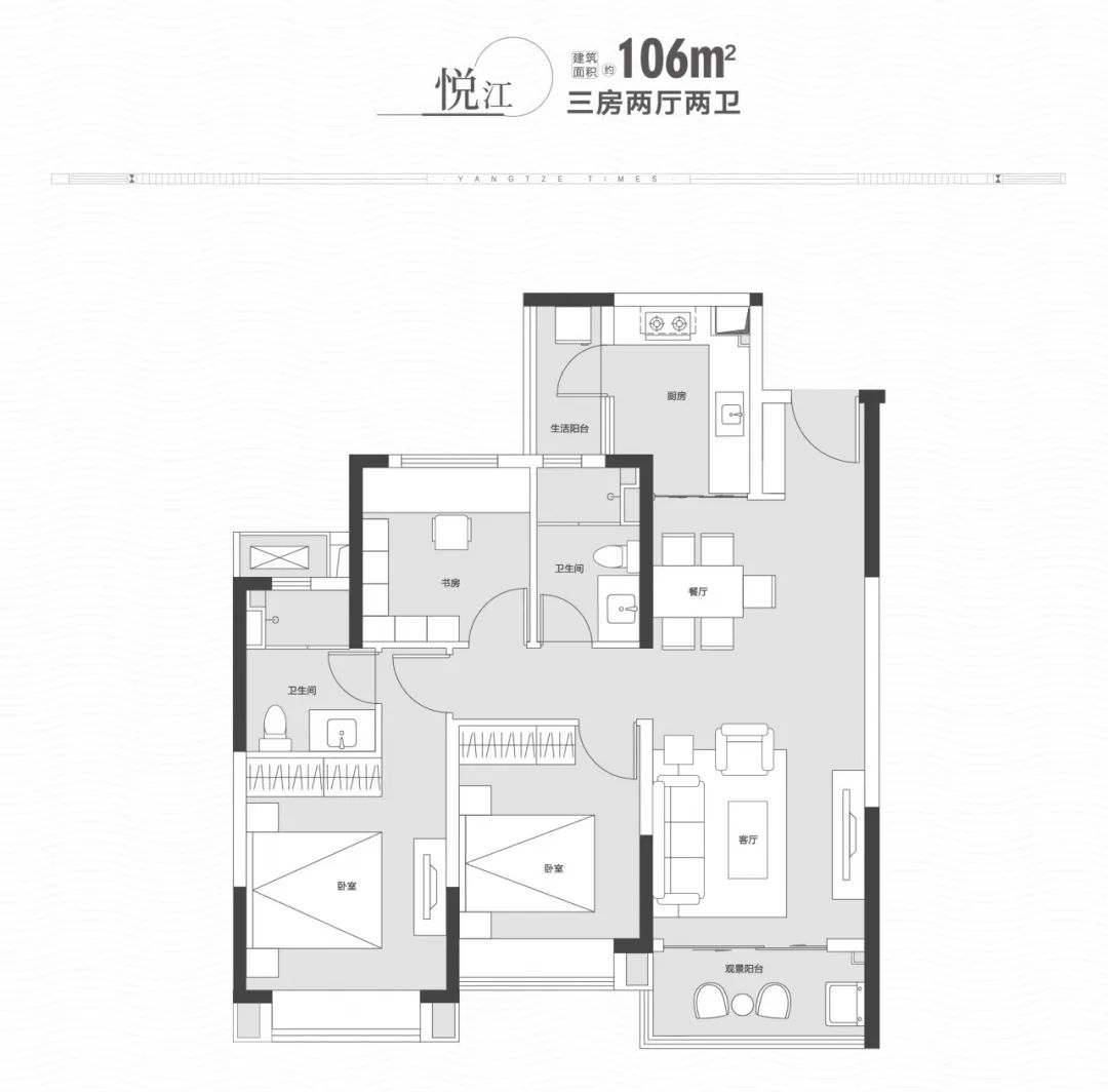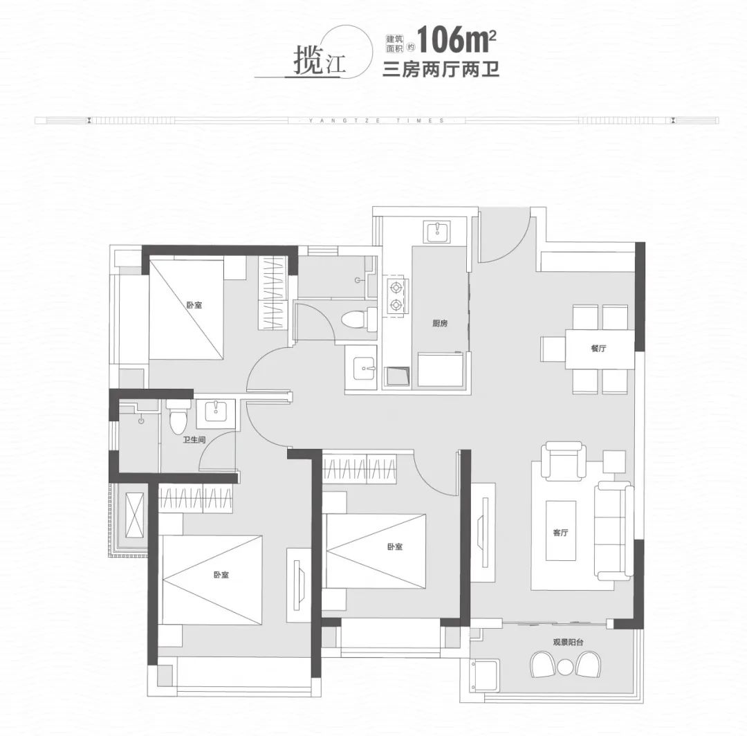 并且更为难得是,中海·长江十里项目做到了几乎户户瞰江的格局,即便是门槛最低的106㎡,也能做到部分观江。这种全瞰江户型的设计,在目前市场上仅有中海一家。而一线江景的不可复制性,也让中海·长江十里的价值更显稀缺。