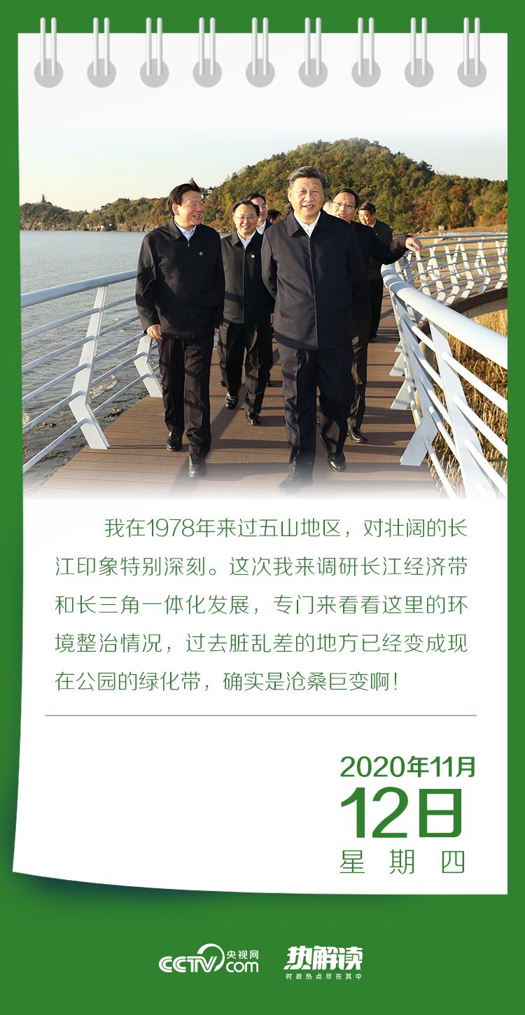 11月12日,在上海出席浦东开发开放30周年庆祝大会后,习近平总书记马不停蹄地赴江苏考察调研,首站来到南通市五山地区滨江片区,考察当地推进长江岸线环境综合治理、实施长江水域禁捕退捕等情况。