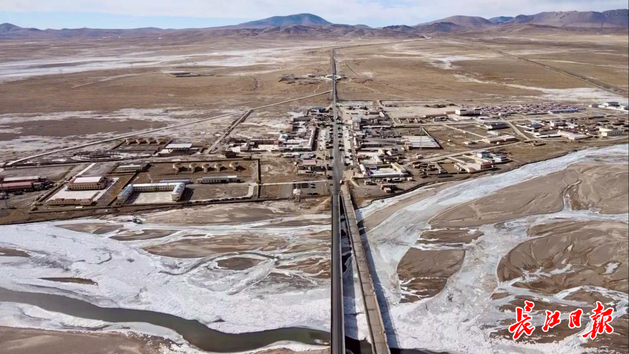 航拍唐古拉山镇和沱沱河。特派记者范芃 摄