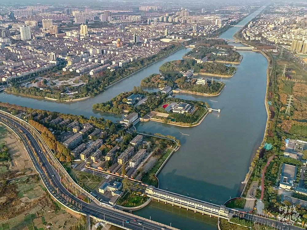 俯瞰江都水利枢纽(总台央视记者徐靖炜、马敏杰拍摄)