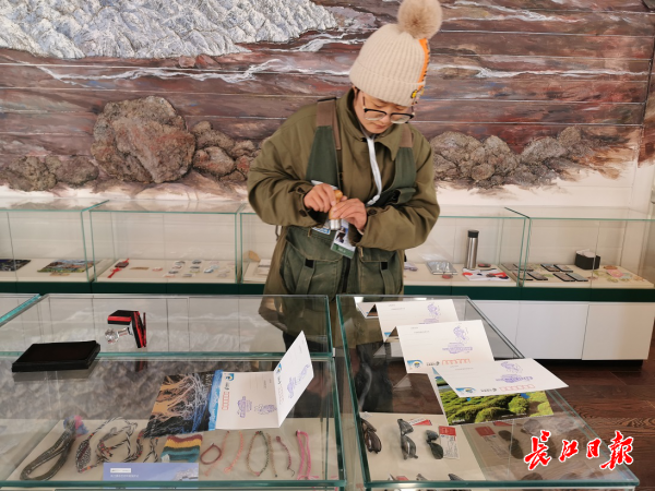 韩霜向长江日报-长江网记者出示了邮局展台里的特色明信片,其中长江源风景明信片非常受游客欢迎,长江日报-长江网记者花60元买了一套,寄给了远在北京的女儿。明信片内容很丰富,包括大美青海、青藏高原、美丽长江等主题,都是热爱环保事业的志愿者们自己拍摄的;志愿者还精心收集了不同时代不同时期的关于长江的邮票,制作成精美的邮集;此外,还有藏羚羊等野生动物的义卖产品……向游客销售这些产品,其中一部分收入要捐给长江源环保事业。
