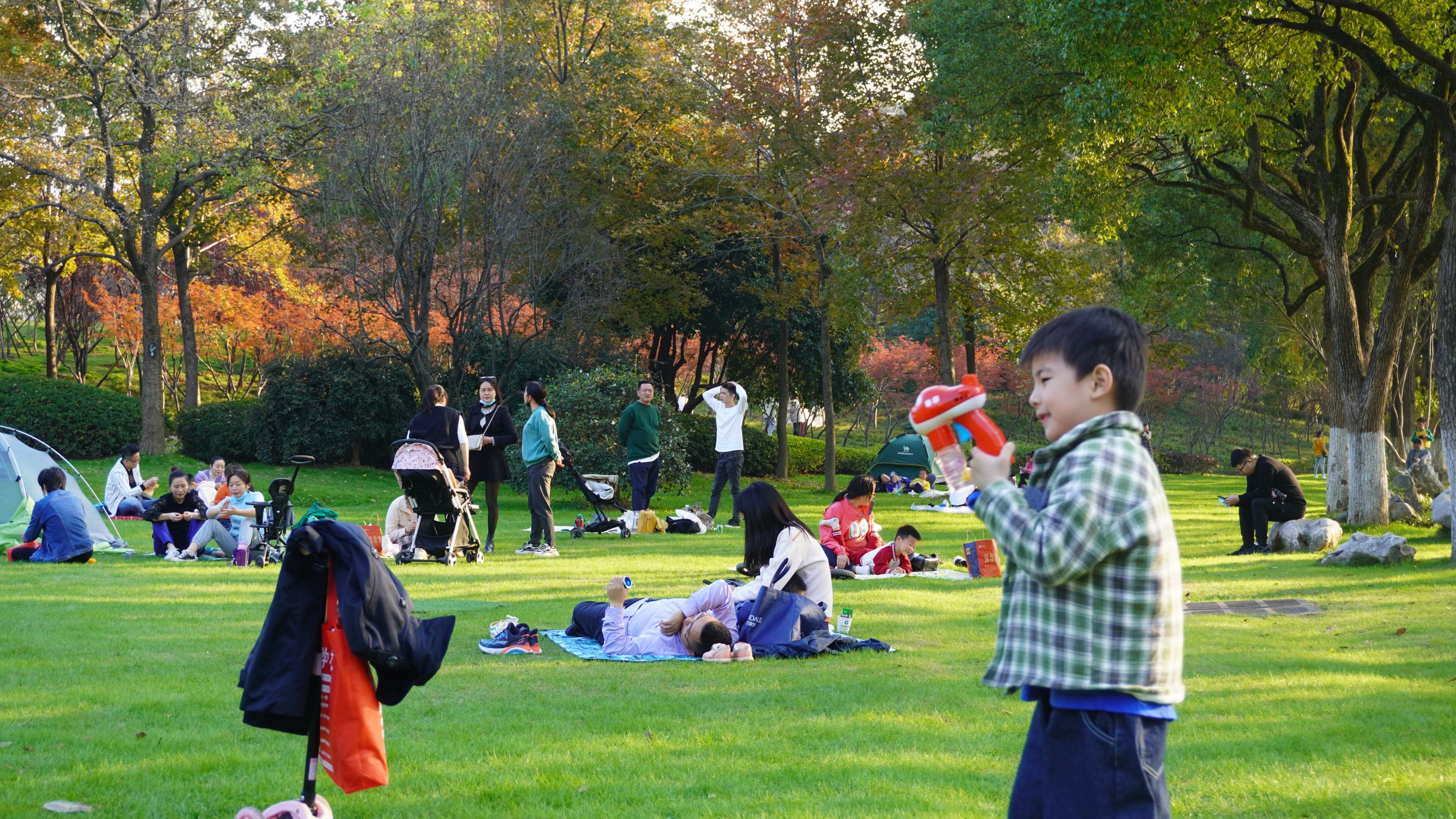 去东湖烧烤!马鞍山森林公园游客秋游劲头十足,园区内除了前来烧烤的游客,还有不少人来赏秋看山茶花的。