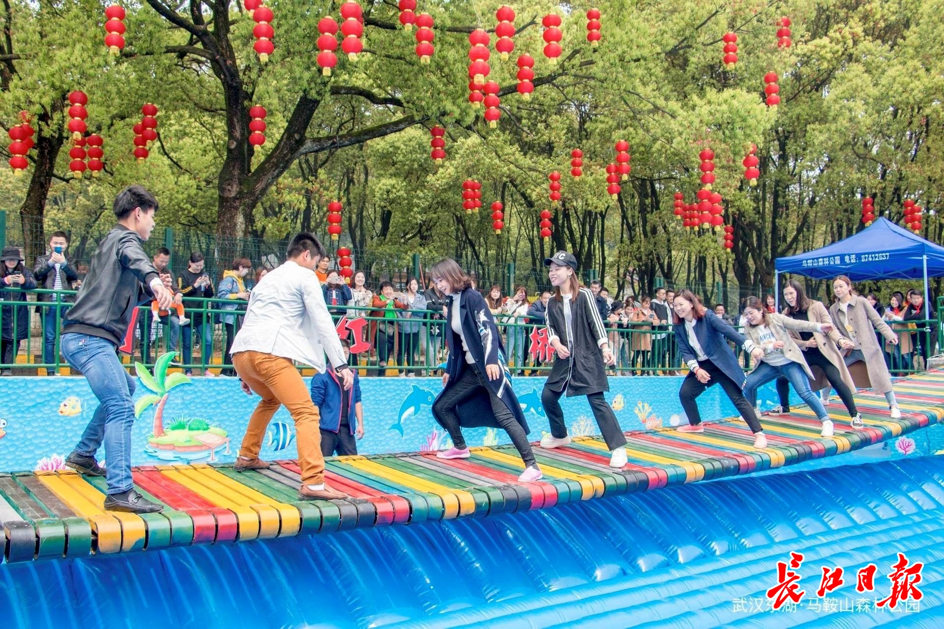 游客在马鞍山森林公园网红桥比拼。大明 摄