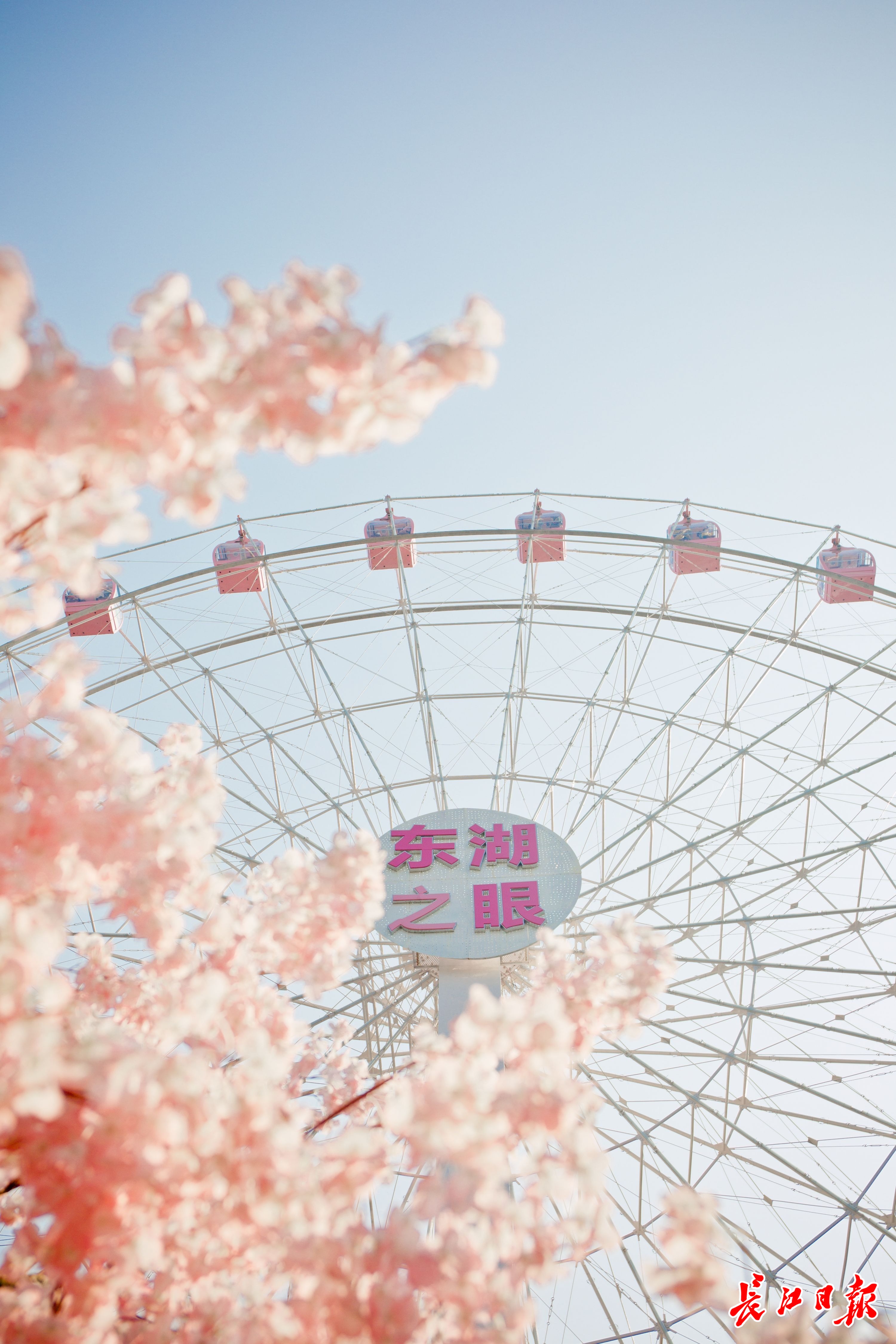 樱花粉色的东湖之眼备受游客喜爱。记者李文婕 摄