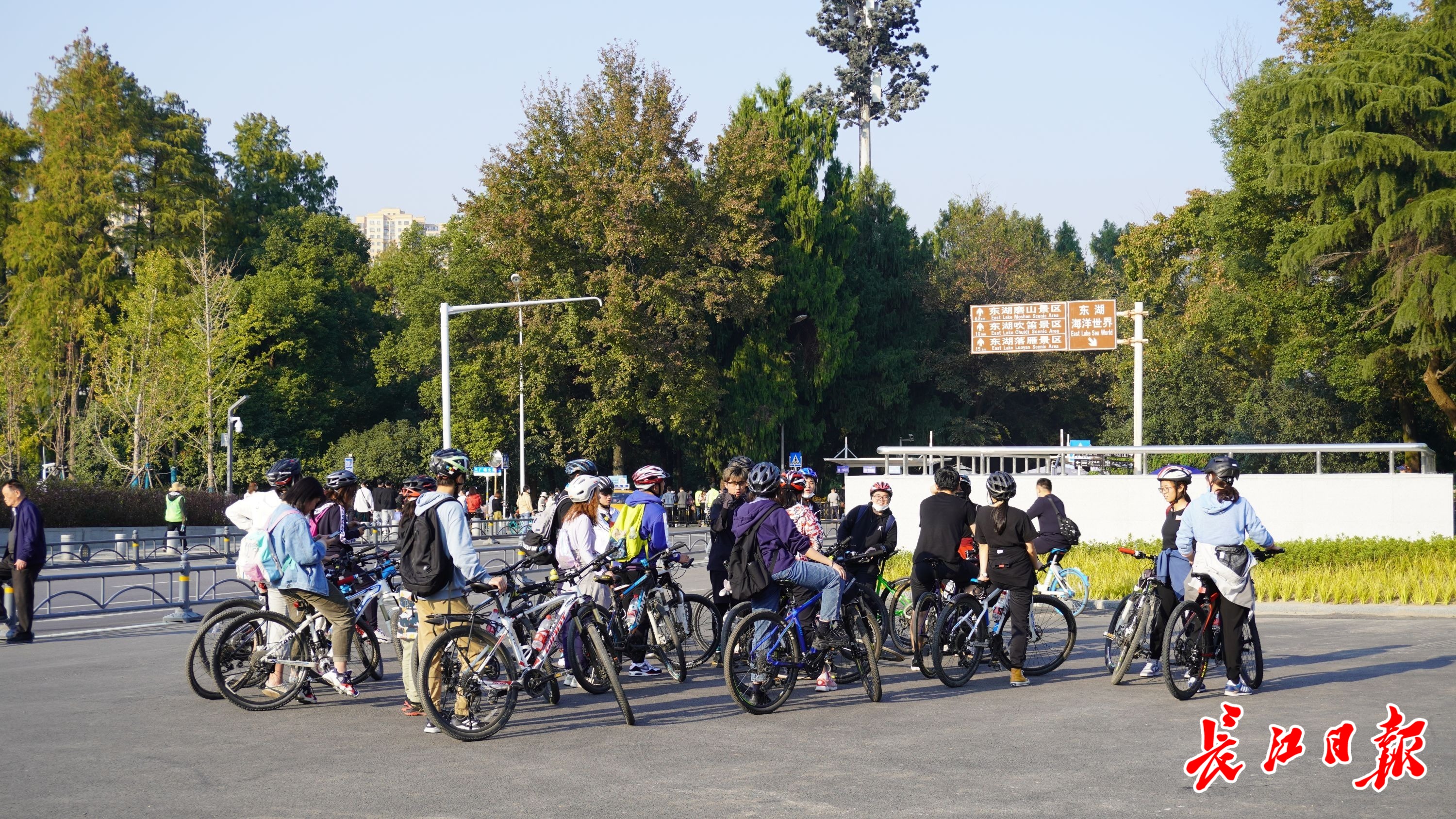 组队游东湖的骑行社团。 记者宁秀梅 摄