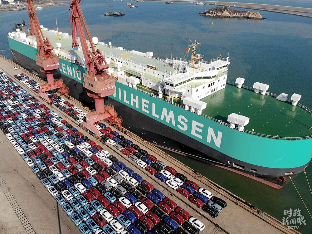 江苏连云港是“一带一路”交汇点城市,这是等待出口的国产汽车和风力叶片。