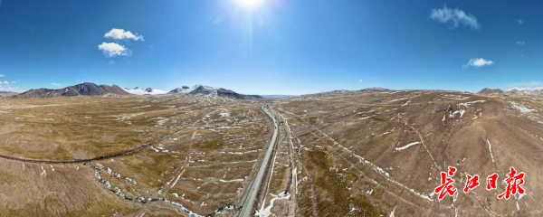 长江日报记者从格尔木进藏,看到千里青藏线,公路、铁路几乎相行相伴,仅青海与西藏交界之处暂时分道:公路从海拔5231米的唐古拉山垭口处通过,而铁路则从公路以西50多公里处海拔5072米处的唐古拉山跨越,这里既是青藏铁路的最高点,也是世界铁路的高海拔之最。