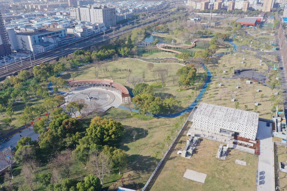 俯瞰常青公园。(无人机照片)(翟岩 摄)