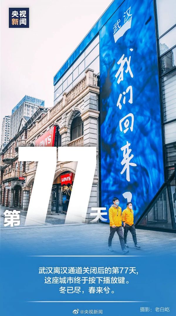 3月5日,“国家地理中文网”以《武汉,只愿你早日复苏!》为题,再次推送了这组照片,文章中写道:摄影师老白在疫情发生后的每一天,都悉心记录着他深爱的这座“江城”,用他的画面掷地有声传递出四个字“武汉加油!”
