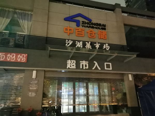 11月21日凌晨,中百仓储沙湖店及周边门面招牌灯光已关闭。 记者孙笑天摄