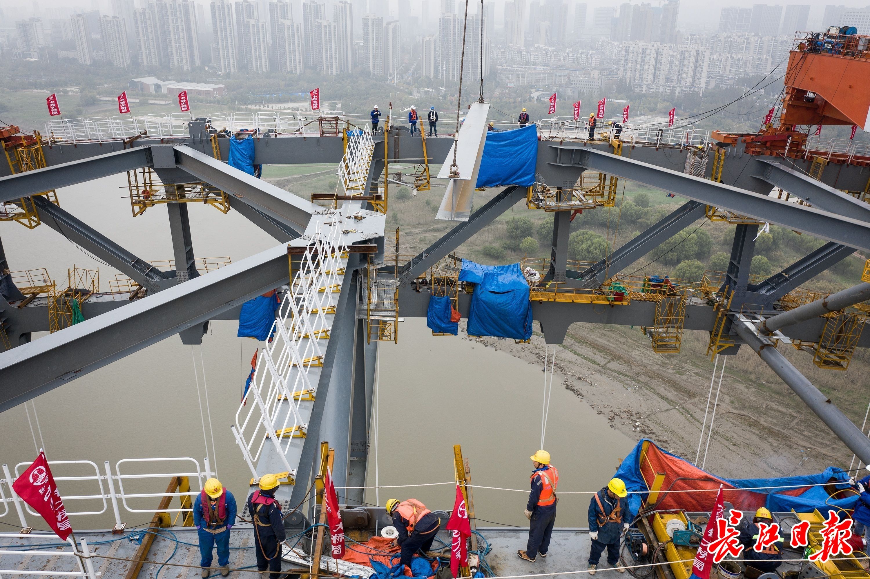 建设方武汉城投集团天兴洲道桥公司副总经理梅建松介绍,主拱顺利合龙,离大桥建成通车又迈进决定性的一步。