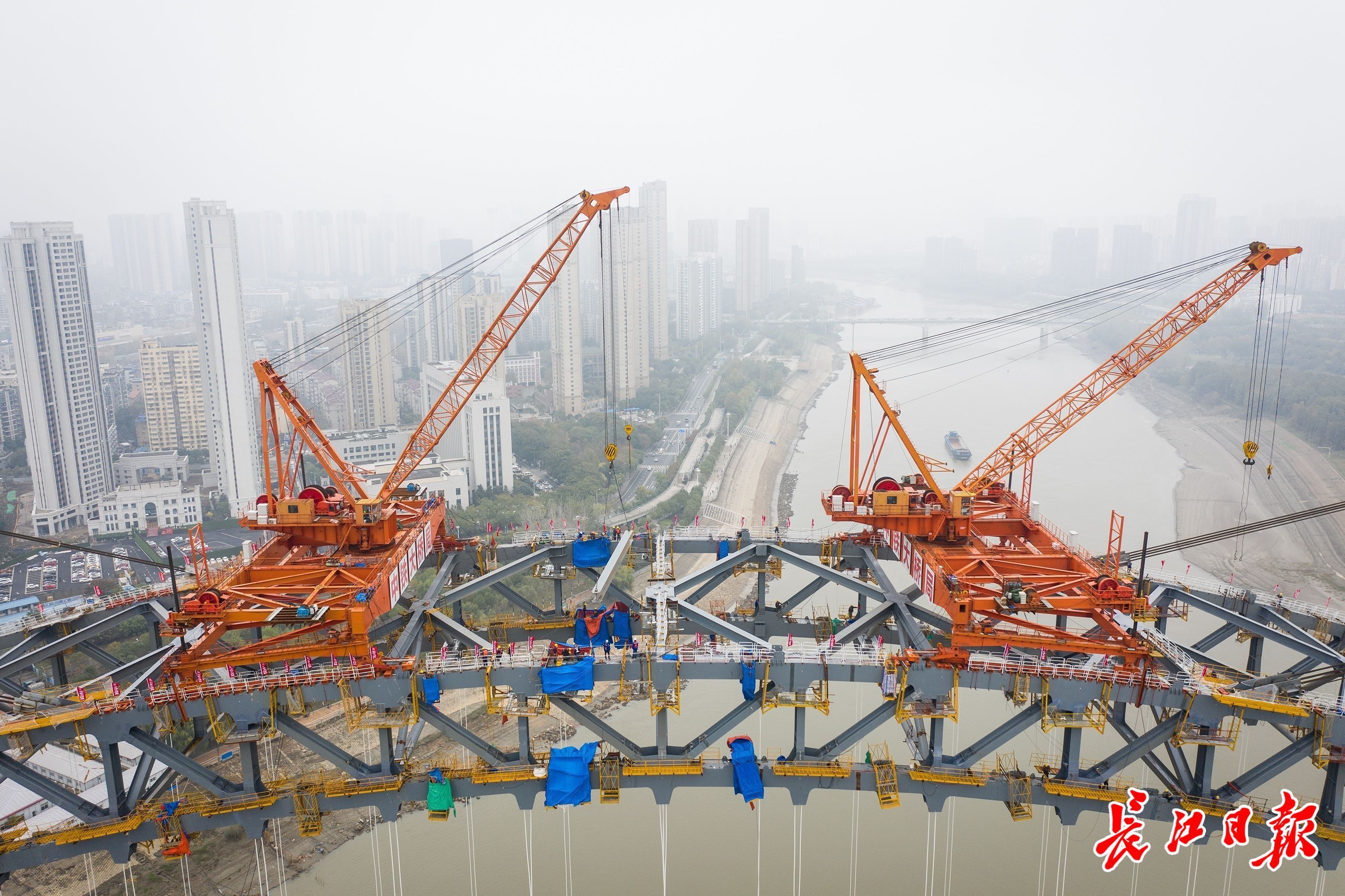 武汉汉江湾桥主拱顺利合龙。记者任勇 摄