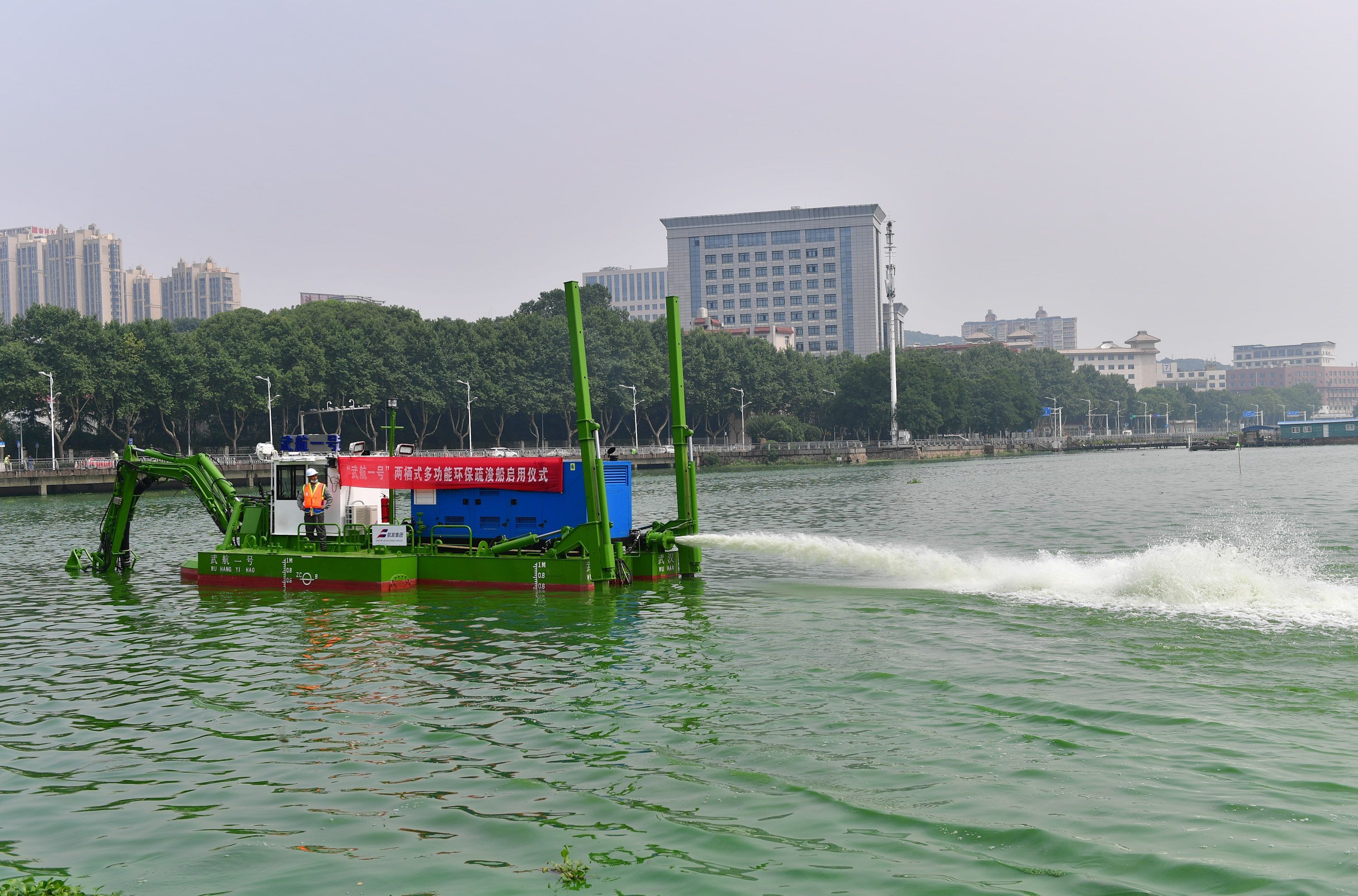 7月1日,“武航一号”两栖式多功能环保疏浚船正式服务于东湖水环境提升工程。