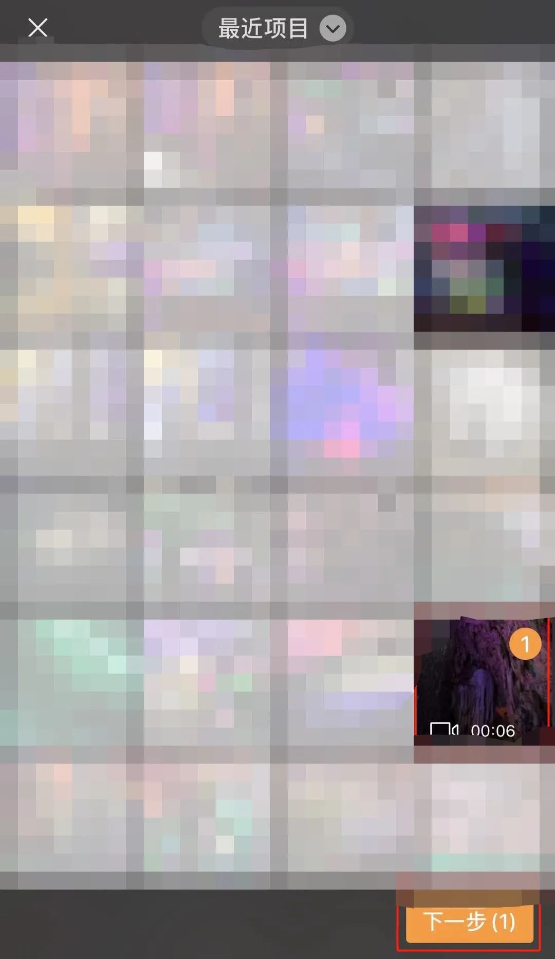 5.选择事先拍好的视频上传,点击右下角“下一步”;
