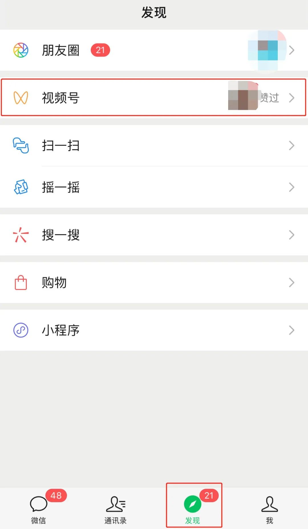 1.打开微信,在下方发现栏中找到视频号并点击;