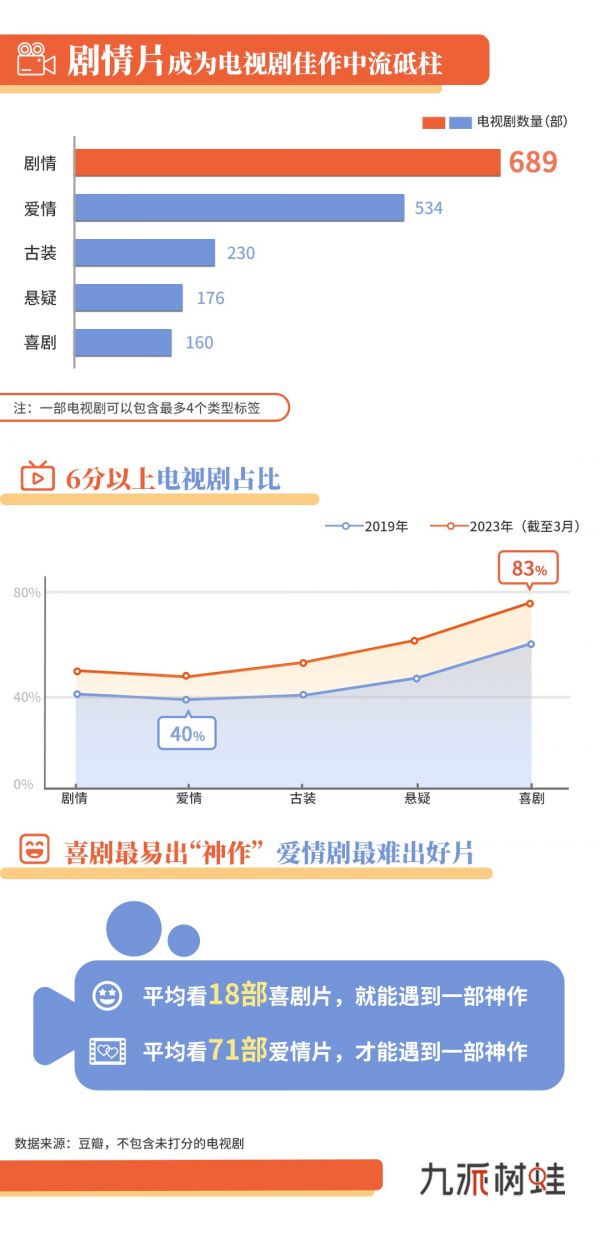 【2】剧情片成为电视剧佳作中流砥柱 爱情片“神作率”不足2%