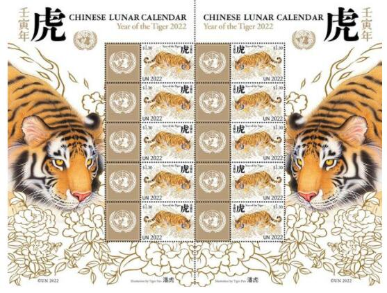 联合国邮政管理局在纽约发行的中国农历壬寅虎年特别版邮票版张。