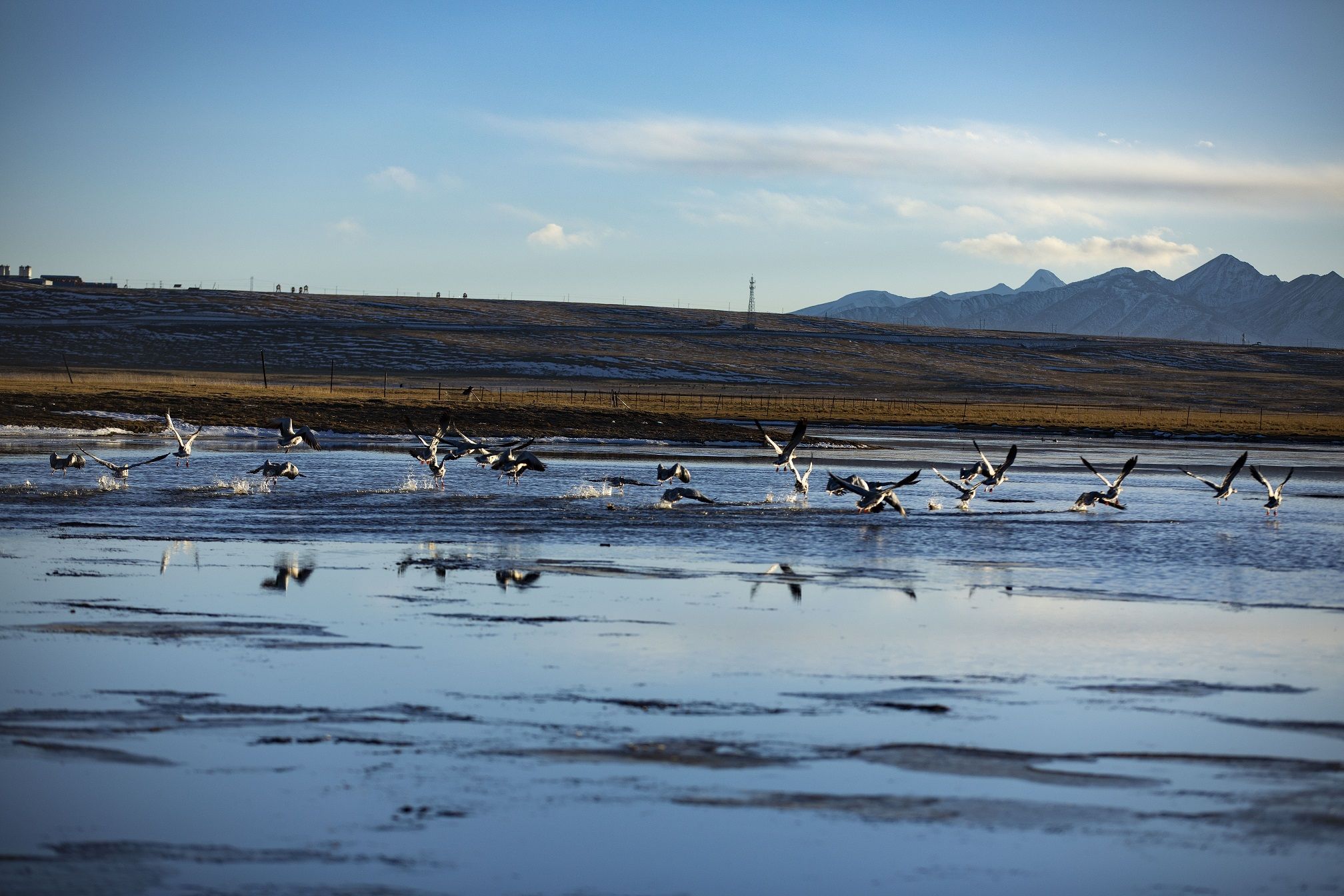 那曲市郊的夯措湖国家湿地公园,成为鸟儿们栖息的乐园。