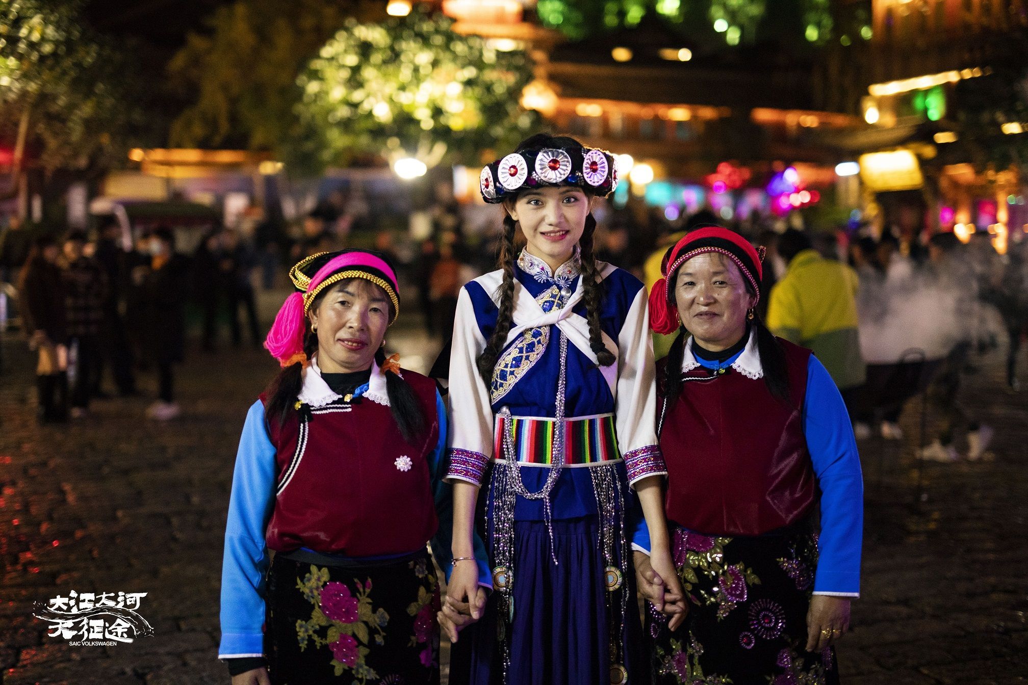 丽江古城之夜,不同民族的人们手拉手、心连心。