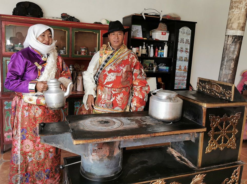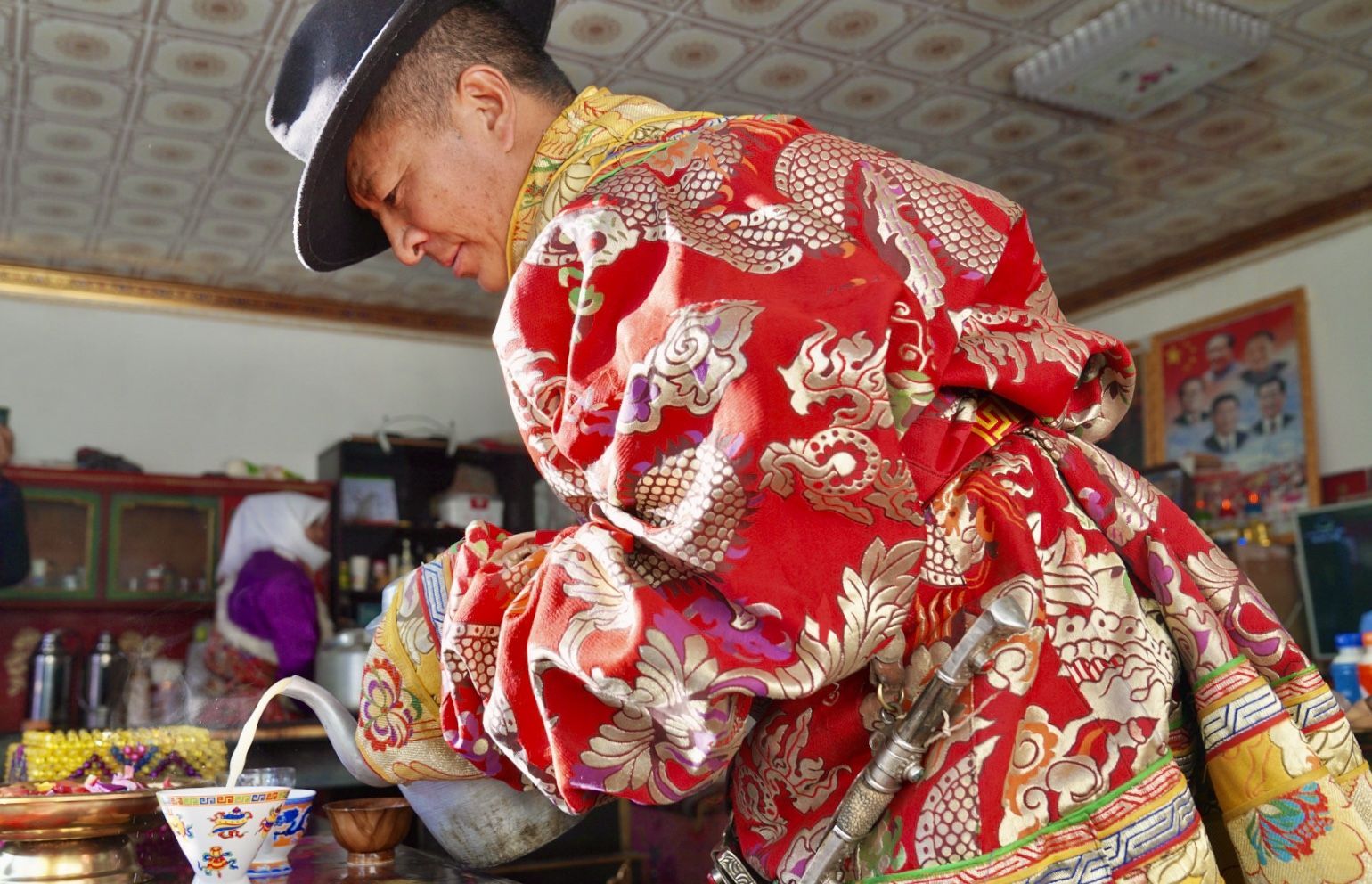 长江正源沱沱河畔,热情给客人倒酥油茶的尼玛。