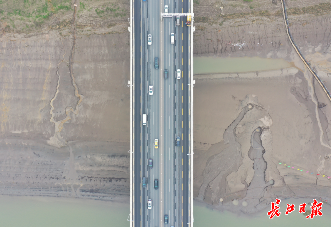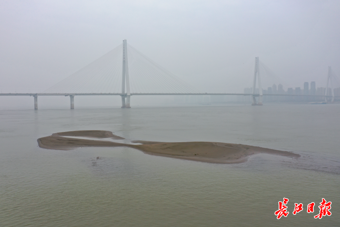 长江日报-长江网12月10日讯 12月10日,长江汉口水位15.08米。入冬以来,长江中下游段进入枯水期,相对汛期期间的长江武汉段水位下降了10米多。二七长江大桥下,一片片沙洲开始在江中慢慢显现,呈现出自然纹理。(记者彭年 摄影报道)