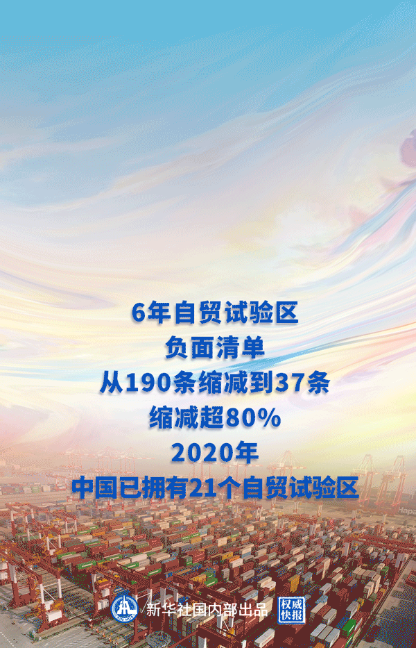 12月14日,商务部研究院发布《中国自由贸易试验区发展报告2020》。报告显示,从2013年首个自贸试验区诞生到2019年底,自贸试验区负面清单6年“瘦身”超80%,从190条缩减到37条,服务业限制措施数量从95项下降到28项。越来越短的清单,见证了越来越开放的中国。(记者:于佳欣 海报设计:张惠慧)