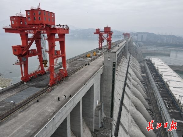 三峡大坝上的起重机,用于闸门检修。特派记者范芃 摄