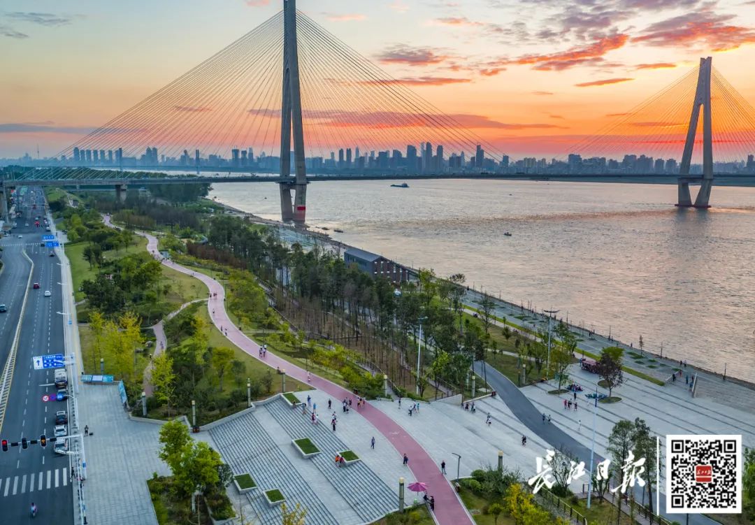 从汉口江滩到武昌江滩,从汉阳江滩到青山江滩,经过多年蝶变,曾经的防洪险滩已“变身”百里画廊,并将以更加和谐、友好、绿色的百里沿江生态文化长廊形象呈现。