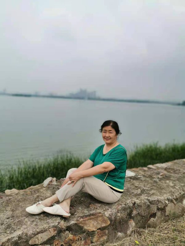 墨水湖小区居民陶大香在墨水湖公园留影。