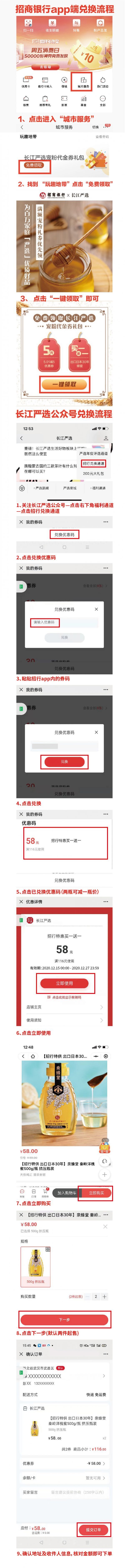 为方便招行用户兑换,长江严选于公众号菜单栏开通了专属通道。优惠券领取后复制券码,前往“长江严选”微信公众号,在“福利通道”中进入“招行兑换通道”,粘贴券码即可兑换原价58元一瓶的亲蜂堂洋槐蜜,1瓶的价格得2瓶。